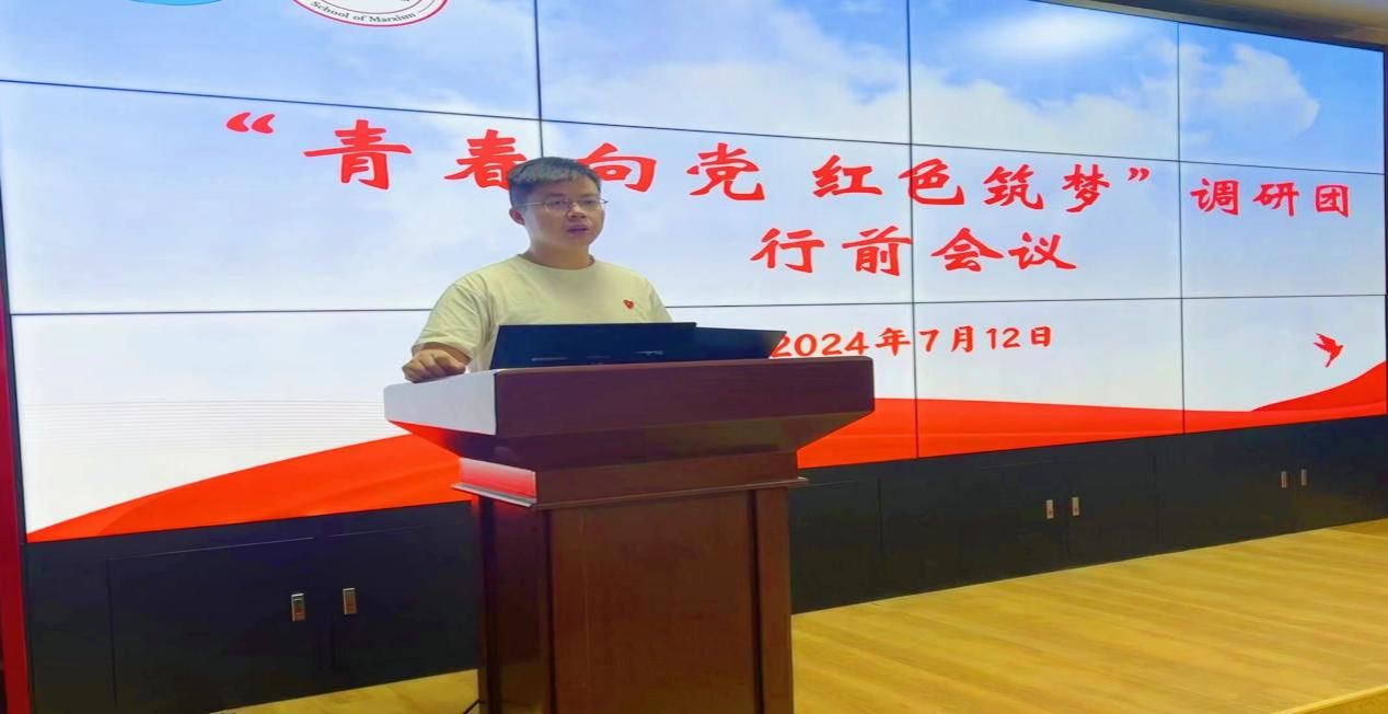 会议伊始,调研团各小组组长依次上台汇报调研前期准备工作进展及下一步具体调研计划。针对汇报情况,团队负责人肖羽婷对本次调研主题、目标和重点进行了全面介绍,并强调活动过程中的注意事项。随后,张蜜真挚寄语,她希望各成员要以饱满的热情、扎实的工作,圆满完成此次调研任务,将调研报告写在大地上,让青春之花绽放在实践中。周浩从总体安排、前期规划、调研过程、后期成果转化四个方面对调研工作进行了全面部署。他强调,在调研过程中要始终绷紧“安全弦”,把好“纪律关”,要拥有系统的调研思维,做好长远的调研规划,做到听真话、察真情,发现真问题,提出新举措。