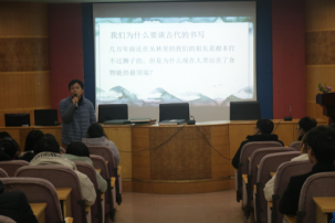 谢科峰博士此次讲座的主题是“中国古代的书写”,他凭借着自己多年积累的学术知识和丰富的阅历,给学生讲解及分析了关于古代的书写的案例。谢科峰博士由“我们为什么要谈书写”为题,层层深入,举出众多事例向大家讲述古代的书写。最后,同学们现场提问,谢科峰博士均做了耐心的回答。