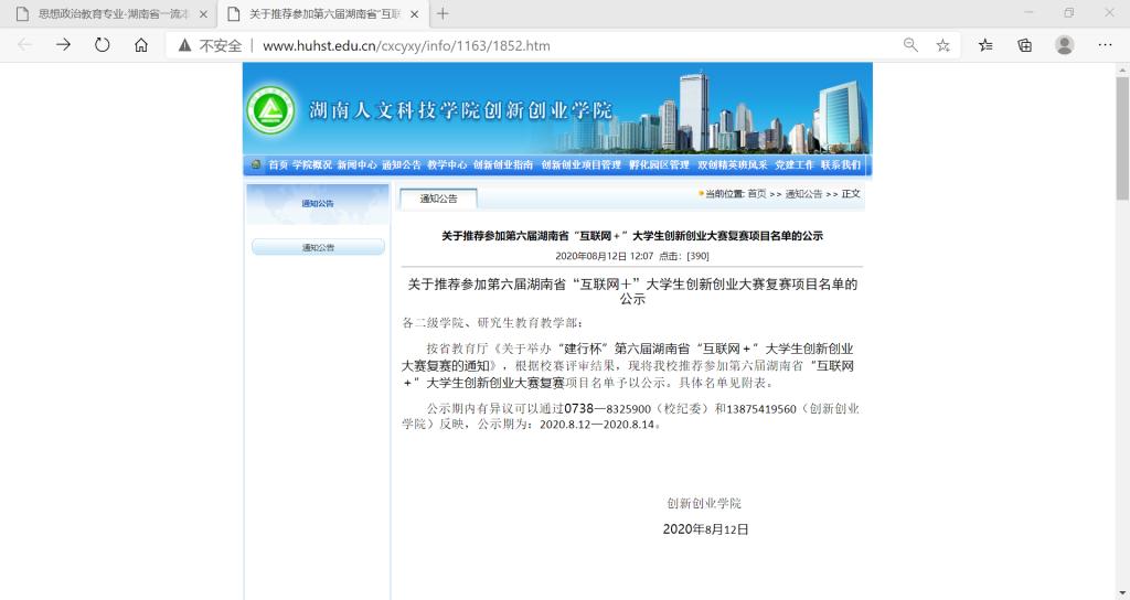 8月12日从创新创业学院传来喜讯,由我院副院长杨国辉博士指导,18级思政一班刘俊鸿负责,向婷婷(18级思政一班)、王淑英(18级思政二班)、刘佳琦(18级思政一班)、谷婷(18级英语专业)参与的“麦芒计划——乡村素质培训中心”作为校级二等奖项目被学校推荐参加第六届湖南省“互联网+”大学生创新创业大赛复赛。