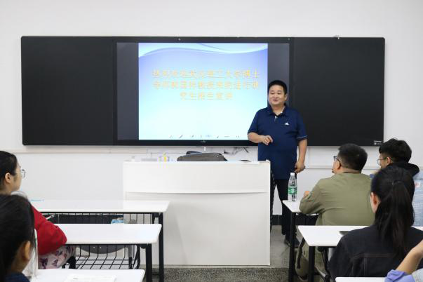 首先,郭国祥简要介绍了武汉理工大学的招生简章,就考研的新规进行了解读。随后,他向同学们介绍了武汉理工大学的马克思主义理论、中国史、政治学、哲学四个王牌专业,并对其进行了考情以及录取情况分析。郭国祥强调,考研是同学们人生的第二次选择,要紧抓考研政策的新变化,及时做出调整以便能更好地进行备考。最后,杨国辉对本次会议进行了总结。他指出,学院会为考研学子提供良好舒适的学习和生活环境,同时鼓励同学们要提高对考研的认识,坚定考研信念,抓紧时间学习,结合自己的实际能力选择报考院校和专业。
