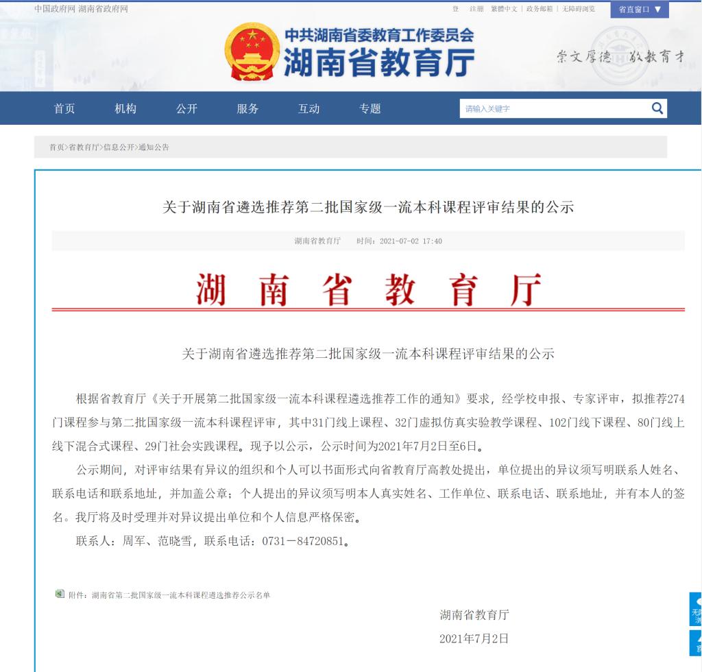 根据省教育厅《关于开展第二批国家级一流本科课程遴选推荐工作的通知》要求,经学校申报、专家评审,省教育厅拟推荐274门课程参与第二批国家级一流本科课程评审,其中31门线上课程、32门虚拟仿真实验教学课程、102门线下课程、80门线上线下混合式课程、29门社会实践课程。据悉,beat365共选送12门课程由省教育厅审核,仅4门课程推荐到教育部参评国家级一流本科课程,我院副院长杨国辉博士主持的《思想政治教育专业社会实践》成功入选。