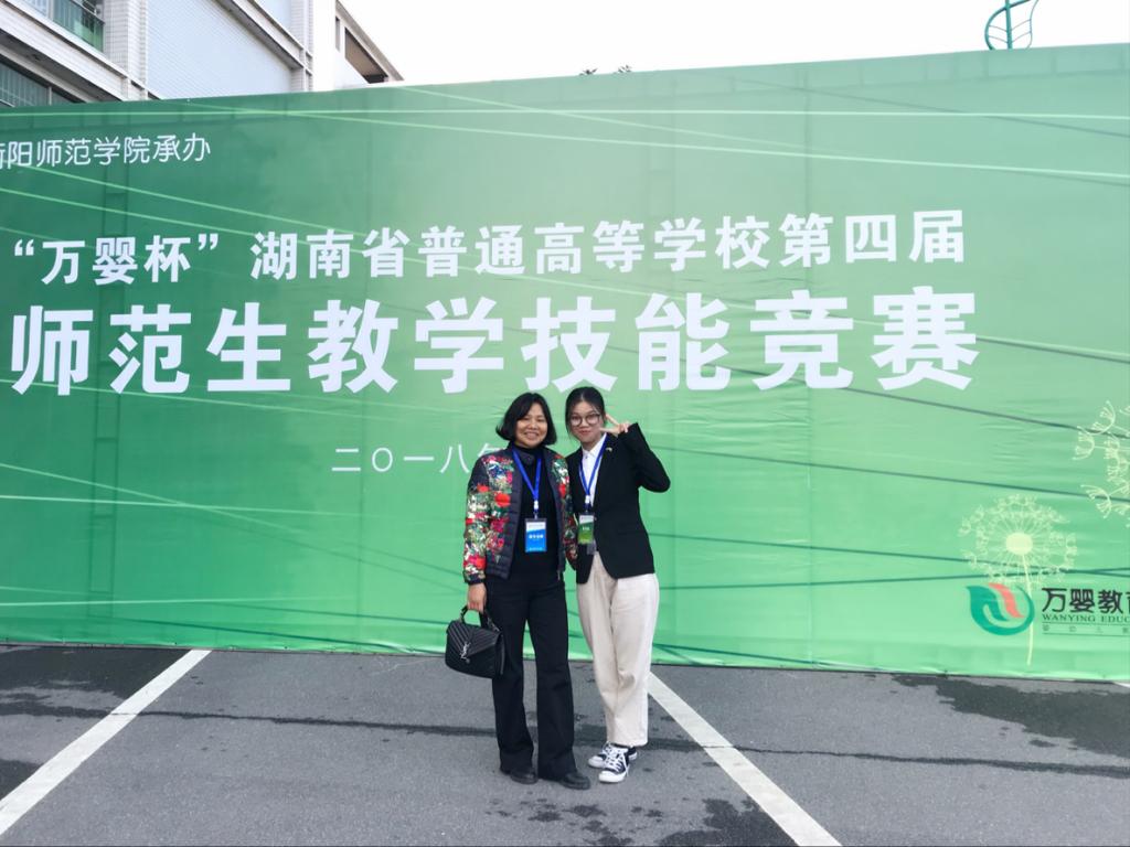 11月10日,由湖南省教育厅主办的湖南省普通高等学校第四届师范生教学技能竞赛在衡阳师范学院举办,我院15级学生李婉溶、指导老师周玉珍代表参赛。