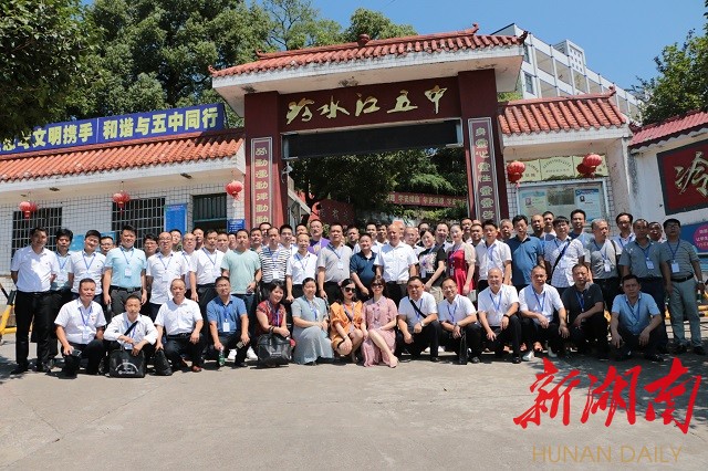 9月26日上午,beat365中文官方网站“国培计划”初中骨干党组织书记提升工作坊研修班(E115)全体学员,在“国培计划”首席专家beat365中文官方网站马克思主义学院副院长杨国辉、研修班班主任成赛军、教研室主任孙淇庭的带领下,赴“湖南省教育系统先进基层党组织”冷水江五中实地考察学习。