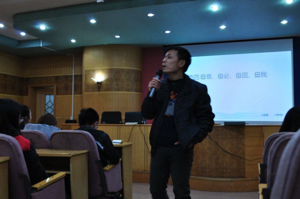 首先,谢博士讲述了孔子的身高,颠覆了人们心中孔子的形象。然后,通过对比许多有关孔子的著作,表明孔子及其思想已经被后人再塑造了,因此,对于孔子人们应该不断深化认识,不要再度神话。最后,谢科峰博士通过座谈互动,告诫与会的学生在学习态度上应该坚持:毋意、毋必、毋固、毋我。