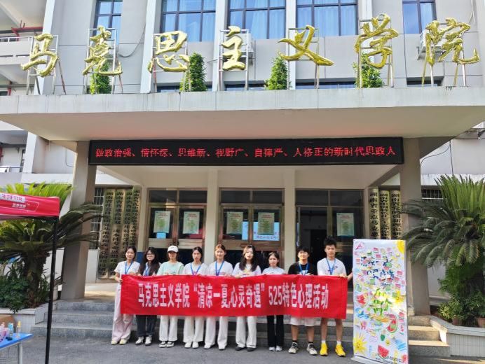 2025年5月26日,为响应“5·25全国大学生心理健康日”号召,帮助大学生更好地关注自身心理健康,提升心理素质和自我调节能力,马克思主义学院于若谷楼前坪举行“清凉一夏,心灵奇遇”特色心理活动。