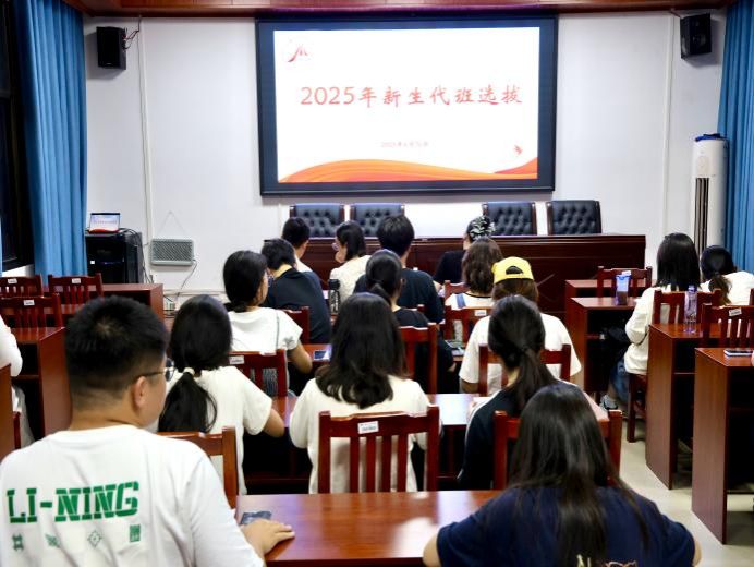 6月16日晚上,马克思主义学院于若谷楼116开展2025级新生代班选拔。党总支副书记阳青、学工办主任张得才与辅导员谢家玉担任评委,团学会主席团成员、历届代班及所有新生代班候选人参加活动。