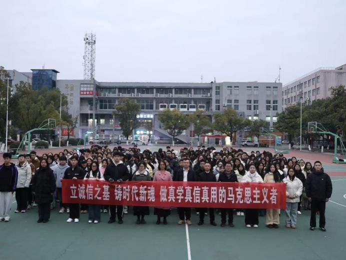 12月29日07:00,马克思主义学院在宇光球场举行“执诚信之笔,答真实之卷”主题升旗仪式。学院院长于意,学校学工部副部长宋双,院党总支副书记阳青,学工办主任张得才及辅导员谢家玉出席,23级、24级和25级同学参加。