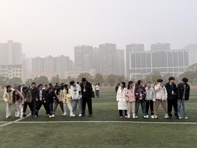 活动以整齐的跑操热身开场。“反口令”项目迅速活跃现场气氛,同学们反应敏捷,思维敏锐。在“十人九足”项目中各组成员默契配合、通力合作,整齐划一地迈向终点。