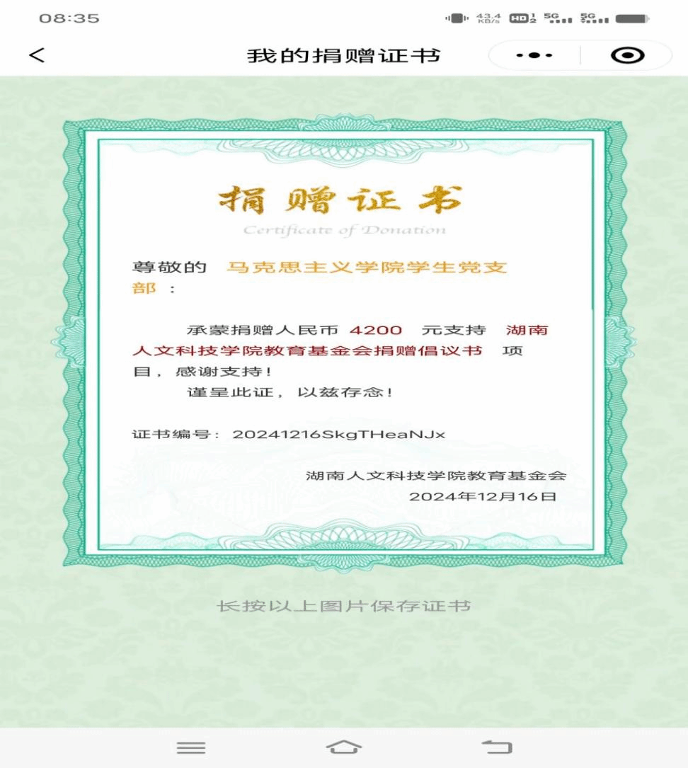 (图为马克思主义学院学生党支部助力学校教育基金捐款截图)