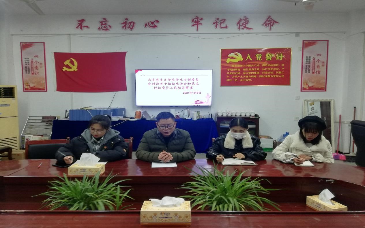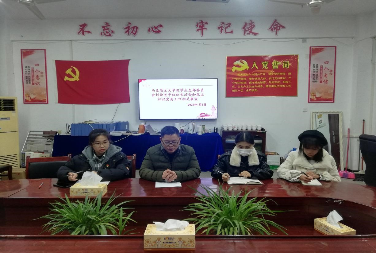 1月5日晚七点三十分,我院学生支部委员会于致远楼516党员活动室召开组织生活会工作讨论会。会议由学生党支部书记张得才主持,学生党支部副书记李冬、组织委员于露莹、宣传委员喻丽果参加。
