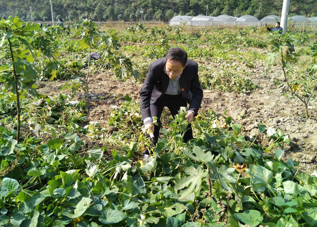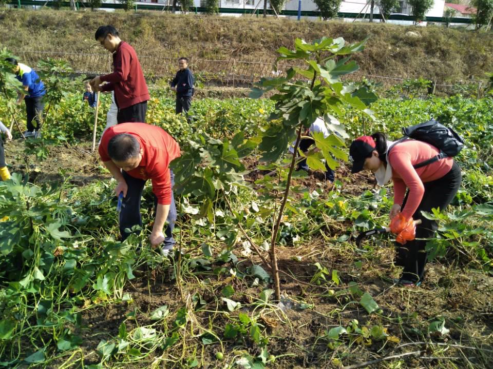 在当地村支书的引导下,我院教工党员来到活动目的地,拿起劳动工具,走进农田,帮助当地村民进行秋收。此次志愿服务活动主要以挖红薯为主。首先是清除红薯藤,游训龙拿起镰刀,带领党员们一垄一垄的割红薯藤。接着,张卫明、杨国辉带领老师们拿起锄头挖红薯,虽然挖红薯并不轻松,但老师们全身心投入其中,避免了给红薯造成不必要的“损伤”,出色完成了挖红薯的任务。与此同时,部分教工党员们积极地帮助村民采摘无花果。最后,全体教工党员将挖出来的红薯进行装袋,并送至村民家中。