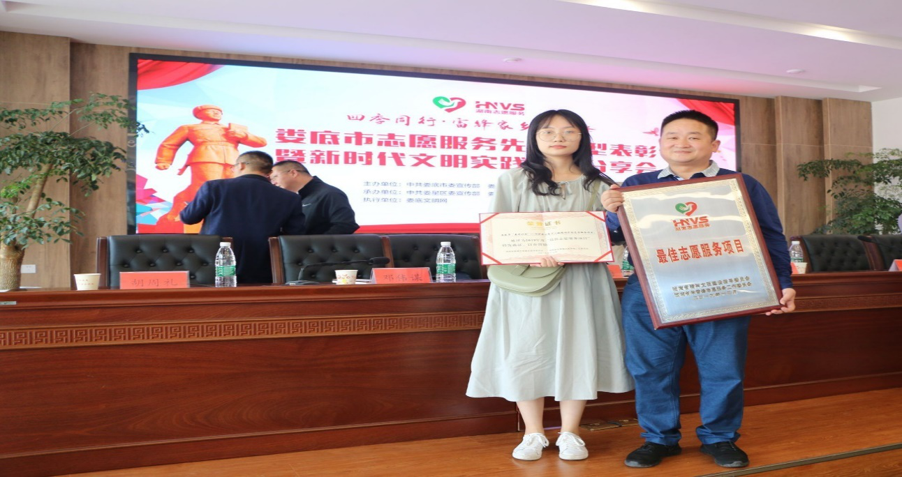 10月13日上午,由中共娄底市委宣传部、娄底市文明办、娄底市民政局主办,中共娄星区委宣传部、娄星区文明办承办,娄底文明网执行的“四季同行·雷锋家乡学雷锋”--娄底市志愿服务先进典型表彰暨新时代文明实践经验分享会在娄星区新时代文明实践中心、娄星区融媒体中心大讲堂举行。娄底各区县宣传部负责人、娄底志愿服务先进典型代表等参与会议,我院副院长杨国辉作为2019年度湖南省最佳志愿服务项目“麦芒计划”—呵护农村青少儿的精神家园的负责人应邀参加此次会议并上台领取荣誉证书及奖牌。