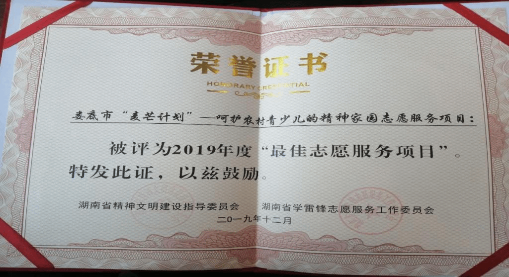 “麦芒计划”成功入选湖南省2019年度最佳志愿服务项目,既是对“麦芒计划”及参与该计划的志愿者们的高度认可,也是对我院参与志愿服务、深入群众、服务地方等工作的充分肯定,对于提升“麦芒计划”及我院影响力、传播力,增强我院学生志愿服务意识、使命担当意识能够产生重大作用。