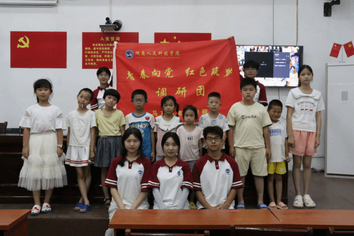 为关爱乡村留守儿童,激发青年大学生社会责任感,7月18日下午,我院“青春向党 红色筑梦”调研团在湖南省第三届“芙蓉学子·乡村振兴”公益计划支持下,以生动鲜活的大思政课形式,为村内留守儿童开设爱国主义教育专题公益课。帮助留守儿童扣好人生第一粒扣子,共同为乡村留守儿童的成长撑起一片蓝天。