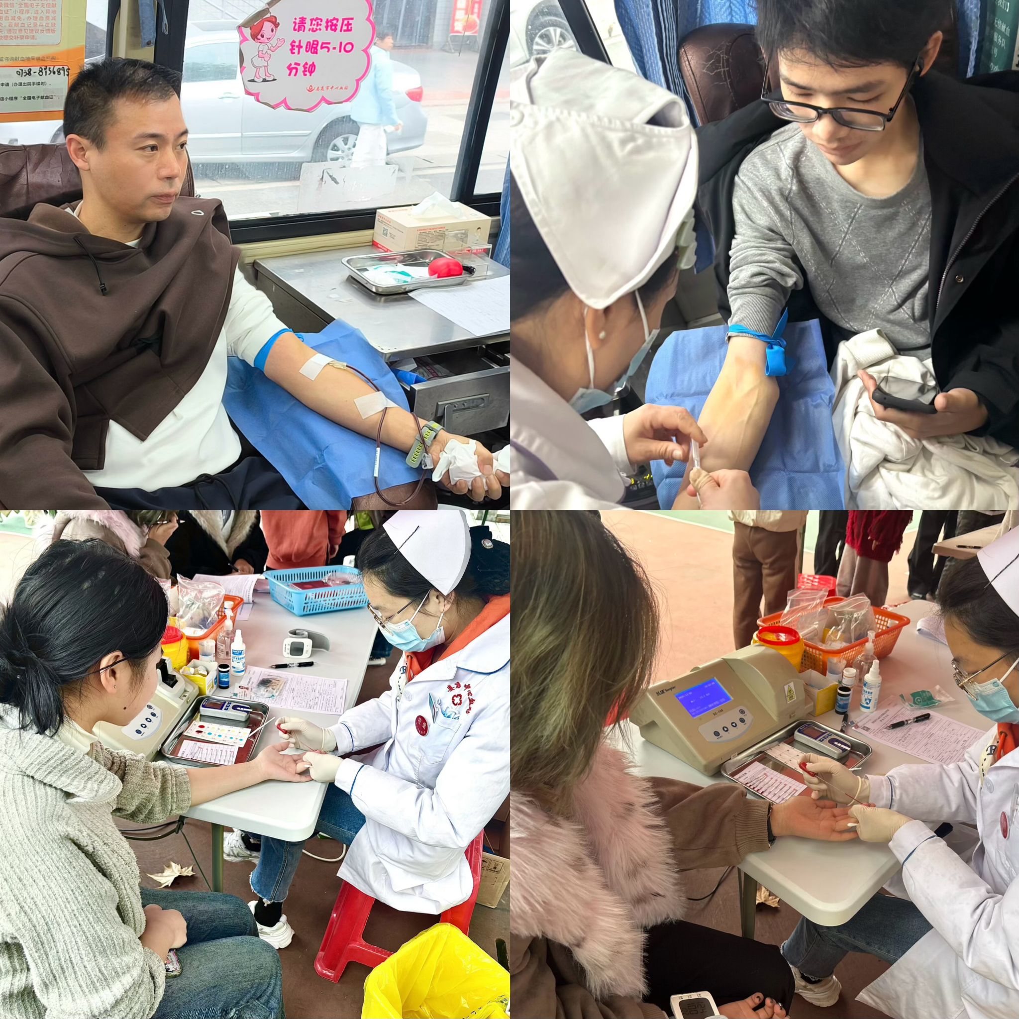 活动现场秩序井然,在工作人员引导下,参与师生有序完成信息登记、健康检测、血型核验等流程,全程规范高效。黄庆源书记来到献血队伍中,与师生亲切交流,鼓励大家积极投身公益事业,以点滴善举汇聚温暖力量。随后,他更是以身作则,带头参与献血,为活动注入满满正能量。邹凌云、段琦璐两位老师全程坚守现场,协助工作人员维护秩序,为献血师生提供贴心服务,叮嘱大家献血后注意休息,其细致周到的关怀让现场暖意融融。