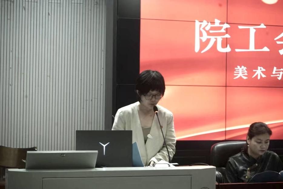 副院长童玲向大会解读了《美术与设计学院绩效工资二次分配办法》(初稿)。