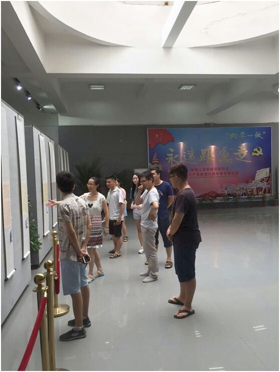 7月4日上午,在美术与设计学院三位学生党支部书记的带领下,部分在校学生党员参观了“永远跟党走”楷书精品展。