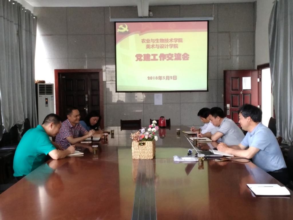 为进一步提高党务工作者工作水平,探索二级学院党建工作特色,5月2日下午,美术与设计学院、农业与生物技术学院党总支在逸夫楼二楼会议室召开了党建工作交流会。两个学院的党总支书记、副书记及部分党总支委员参加了会议。会议由美术与设计学院党总支书记谢光绎主持。