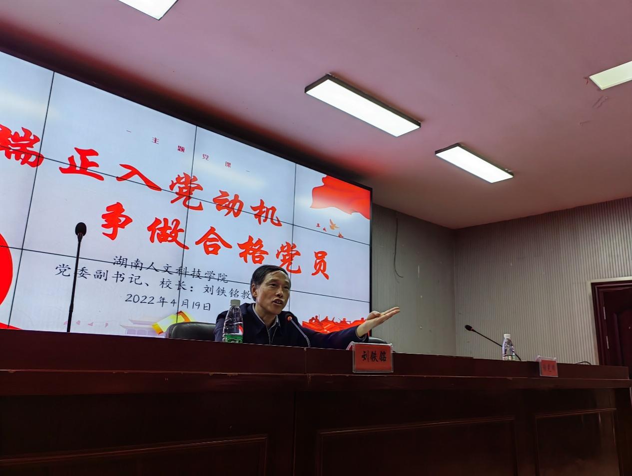 为加强对入党积极分子的培养教育,引导广大青年学生积极向党组织靠拢,4月19日晚上,校党委副书记、校长刘铁铭在美术与设计学院为第31期入党积极分子培训班学员讲授“端正入党动机、争做合格党员”专题党课,党课由美术与设计学院党总支书记谢光绎主持,全体院领导、各党支部书记、第31期入党积极分子培训班学员及在校学生党员参加。
