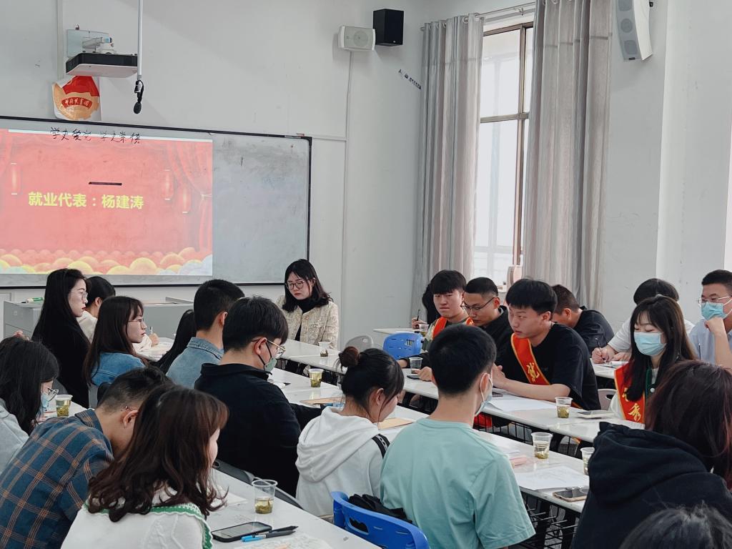 活动中,学生党员李海广作为就业之星、杨建涛作为就业之星、祁雪石作为学习之星、靳泽波作为考研之星、解梦晓作为优秀毕业生代表,分别从学习、考试、就业等多方面与支部全体成员分享他们的心路历程、成功经验和感悟。生动的事例、真挚的情感赢得现场同学们热烈掌声。