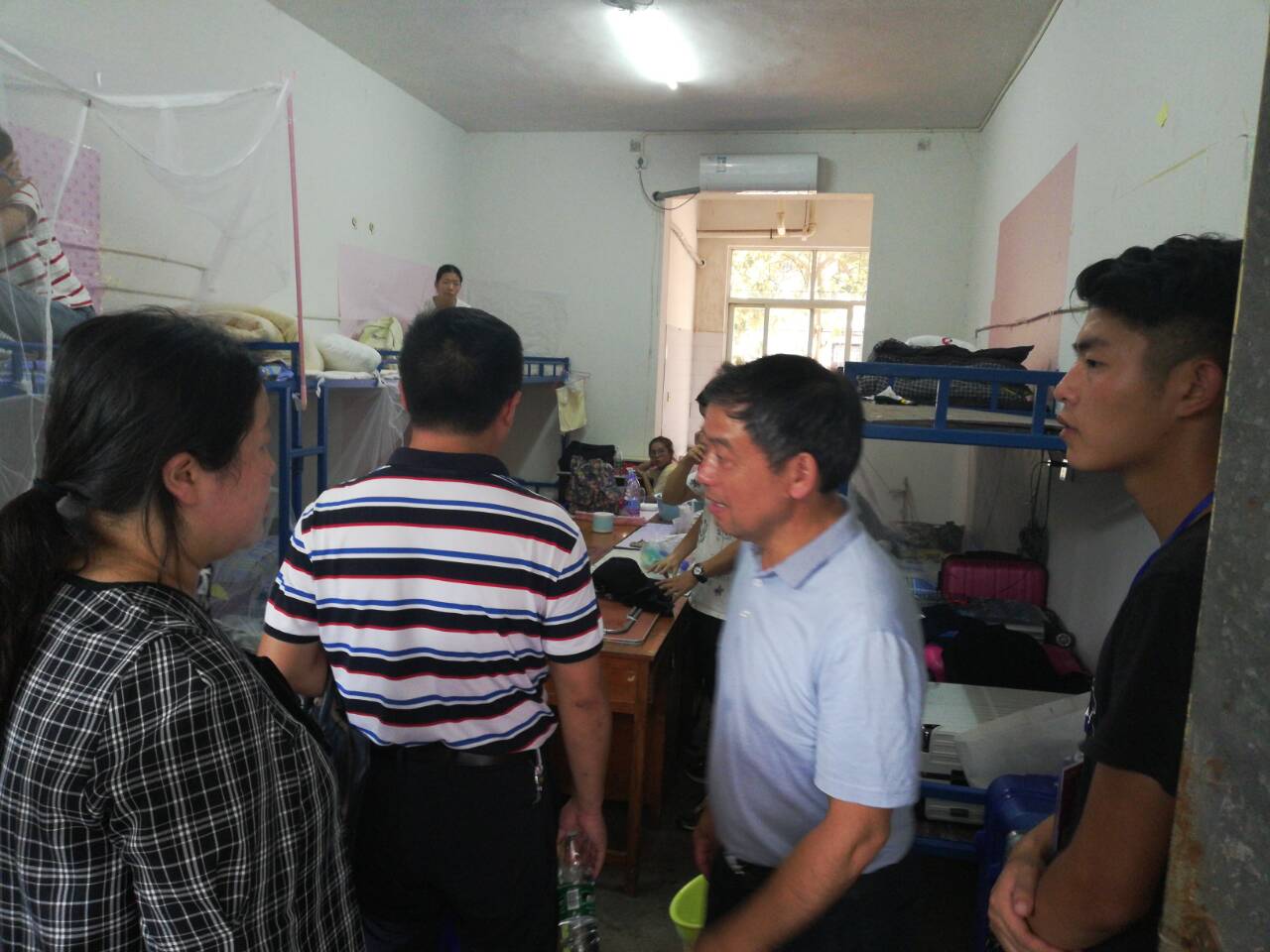 9月8日下午三时,烈日炎炎,美术与设计学院今年迎新工作接近尾声。我院领导心系新生,院党总支书记谢光绎、党总支副书记易俊及全体辅导员对新生宿舍逐一走访。