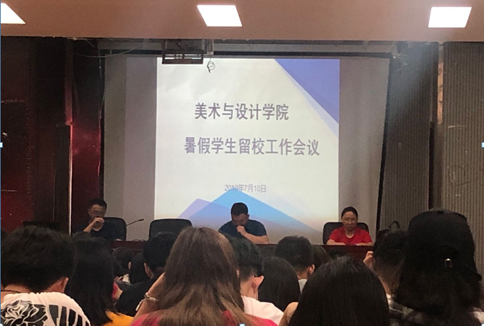 7月10日上午,学院在一楼报告厅召开2019暑假留校学生工作会议。分管学生工作副书记易俊、各年级辅导员及所有留校学生参加本次会议。会议由学工办主任张晶露老师主持。