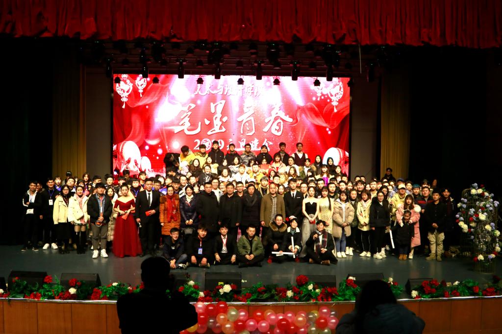 晚会在极具活力的舞蹈《Dance Party》中拉开序幕,学院党总支书记谢光绎发表了热情洋溢的新年致辞。谢书记回顾了学院在2018年取得的瞩目成绩,希望大家再接再厉,共创美设院美好明天,并向全体师生表达了诚挚的问候和新年美好的祝愿!情景剧《青柠》贴近大学生生活学习,展示了大学生青春年华;“人文颂”&现场书法创作节目中,易添顺等同学泼墨挥毫,用笔墨抒写青春,弘扬传统文化;小品《你的模样》、《父亲》将观众带入了感人的情境,许多观众流下感动的泪水;喜剧《倩女不幽魂》则引爆了大家的笑点,乐翻了全场;老师们呈现的汉服秀《国家宝藏》引起了台下观众热烈的反响,将晚会活动推向高潮。吴扎拉涛教授经典歌曲《鸿雁》,让观众近距离的感受到了艺术殿堂的大师风采。晚会在歌声中完美落幕。