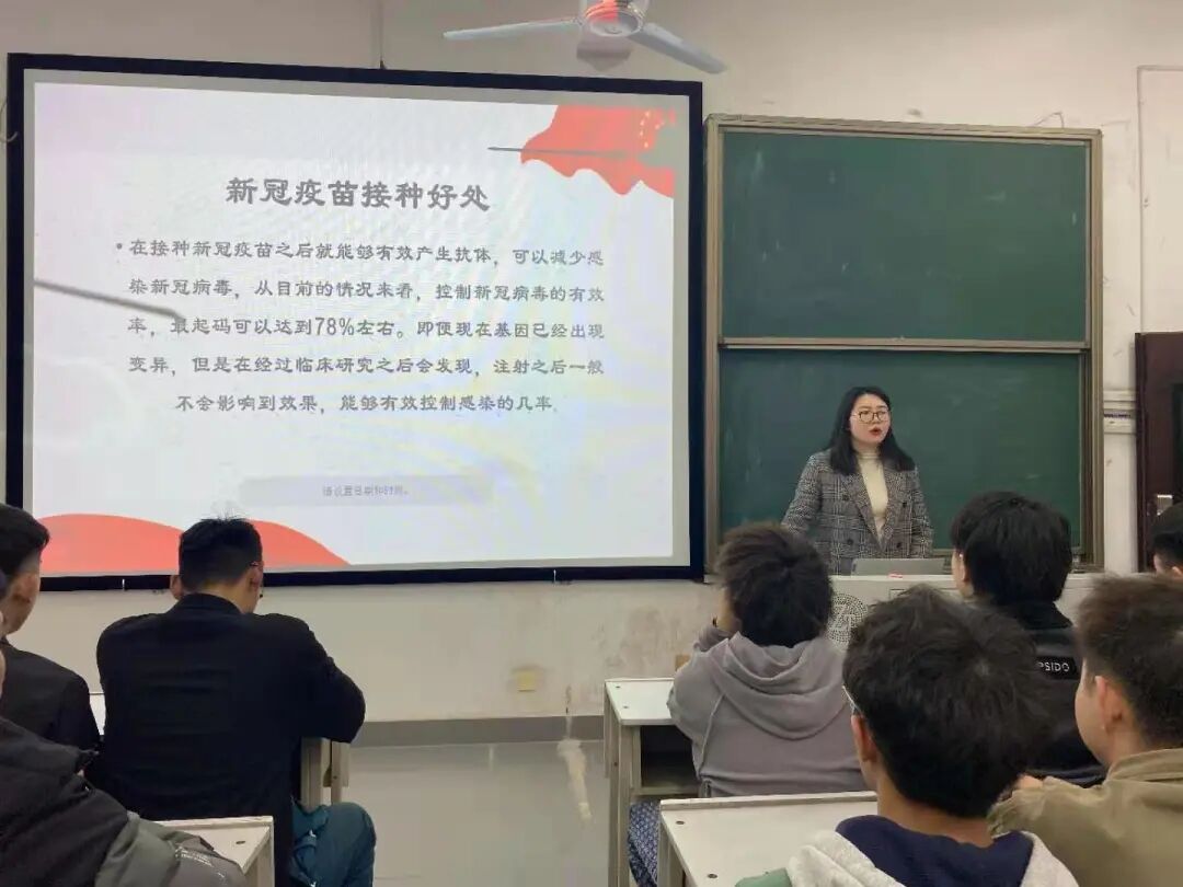 会上,学工办主任左玉洁师讲了关于接种疫苗的好处、接种疫苗的注意事项、接种前的准备以及班级接种疫苗的流程顺序与地点。在接种新冠疫苗后能够有效产生抗体,减少感染几率,在当前严峻的疫情下,接种疫苗的普及至关重要。但接种疫苗也有注意事项:接种人员需满18岁,对疫苗中任一成分过敏者不可用,妊娠期妇女不可用,发烧、急性疾病期患者及慢性疾病期患者不可用等。据左主任所讲,办公室工作人员们都已接种了疫苗,保证了我们教学环境的安全性。