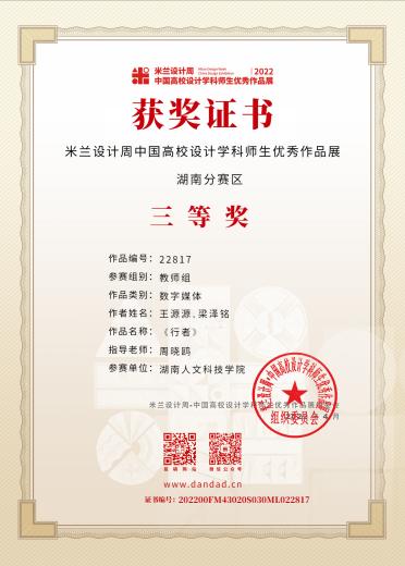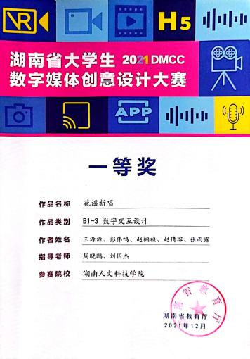 2021年12月获湖南省大学生数字媒体创意设计大赛交互设计一等奖;