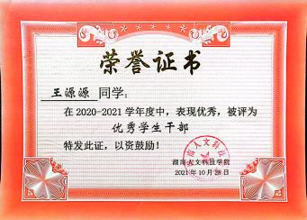 2020-2021学年度校优秀学生干部