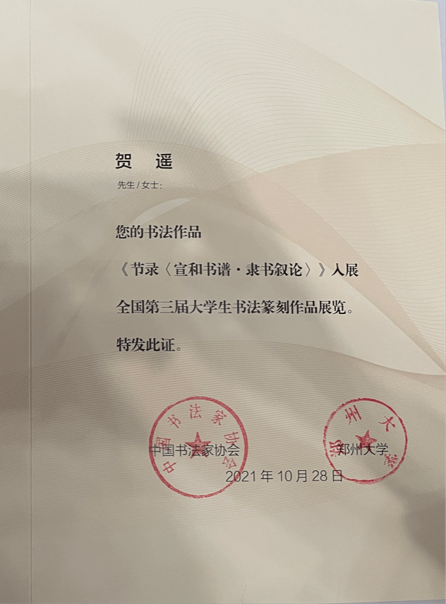 庆祝中国共产党成立100周年全国大学生书法篆刻大赛入展