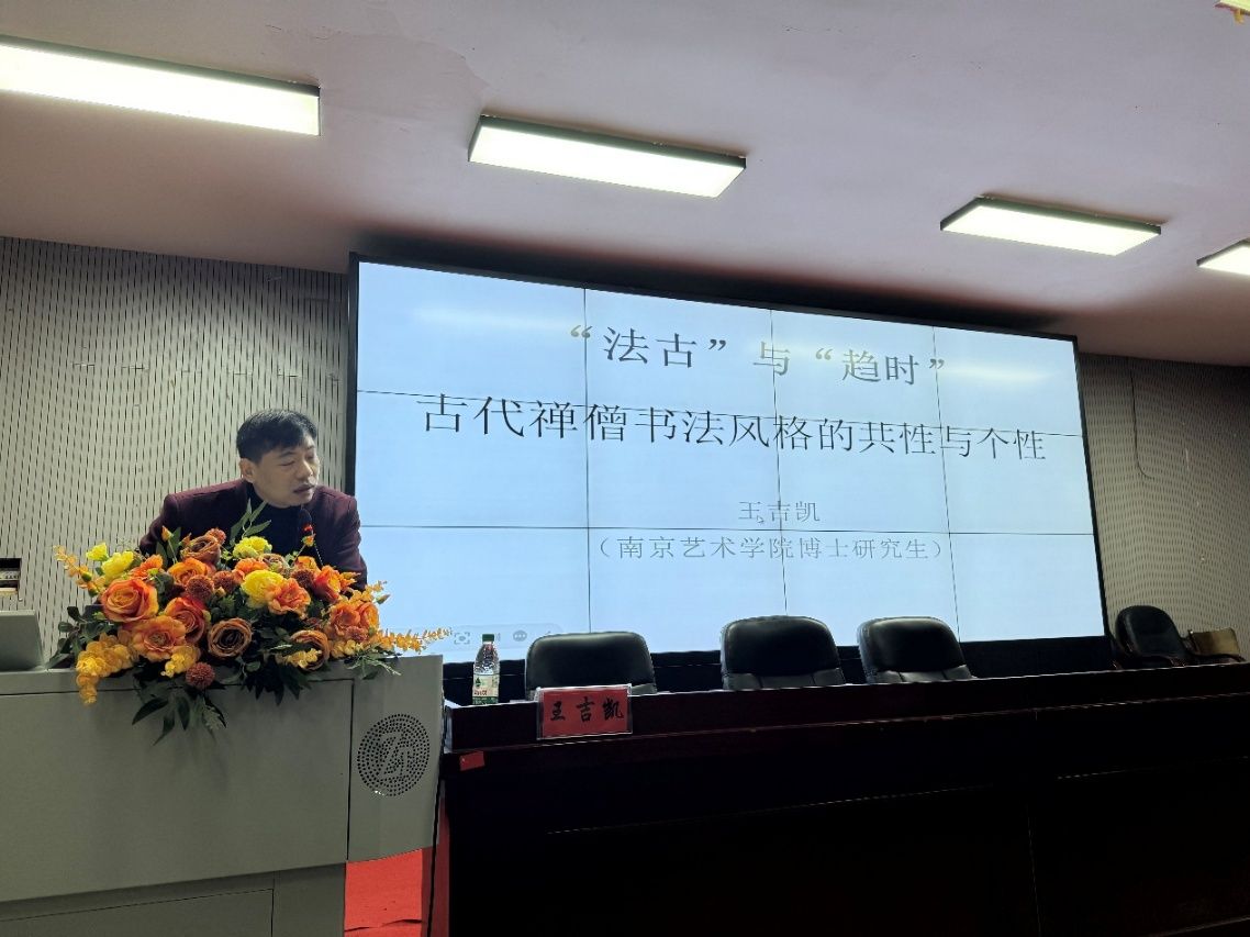 2024年12月10日,beat365中文官方网站美术与设计学院于逸美楼一楼报告厅举行了“法古与趋势”主题讲座。特邀南京艺术学院美术学院博士研究生王吉凯主讲,李国清老师主持。beat365中文官方网站美术与设计学院在校书法生全部到场。