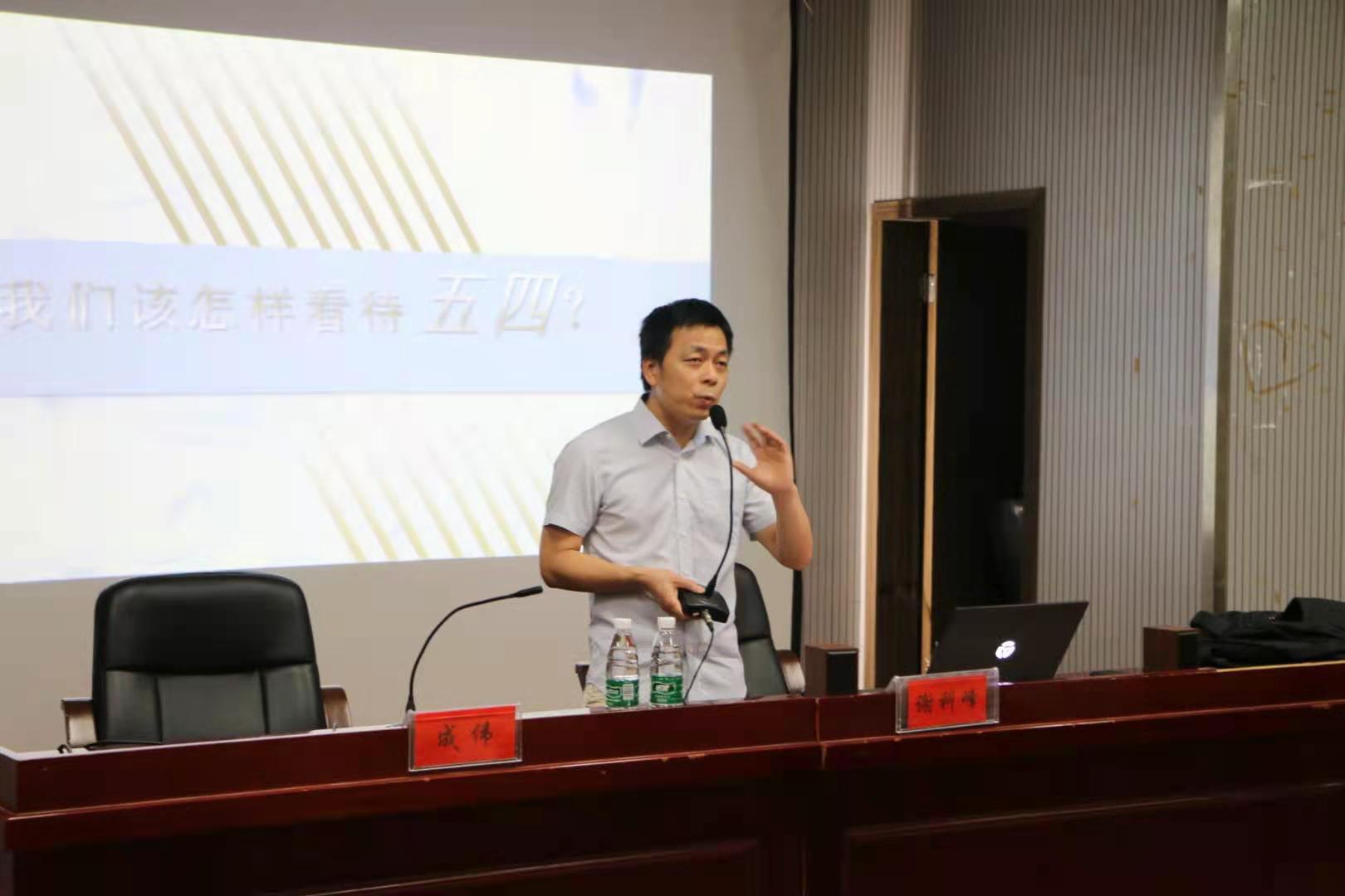 为进一步有效开展党史学习第三专题学校教育,激发广大师生党员、学生干部党史学习的热情,5月13日晚,我院邀请马克思主义学院谢科峰博士来院开展以“五四运动”为主题的党史学习教育专题讲座。讲座由学院党总支副书记成伟主持,全体师生党员、全院主要学生干部约300人聆听讲座。