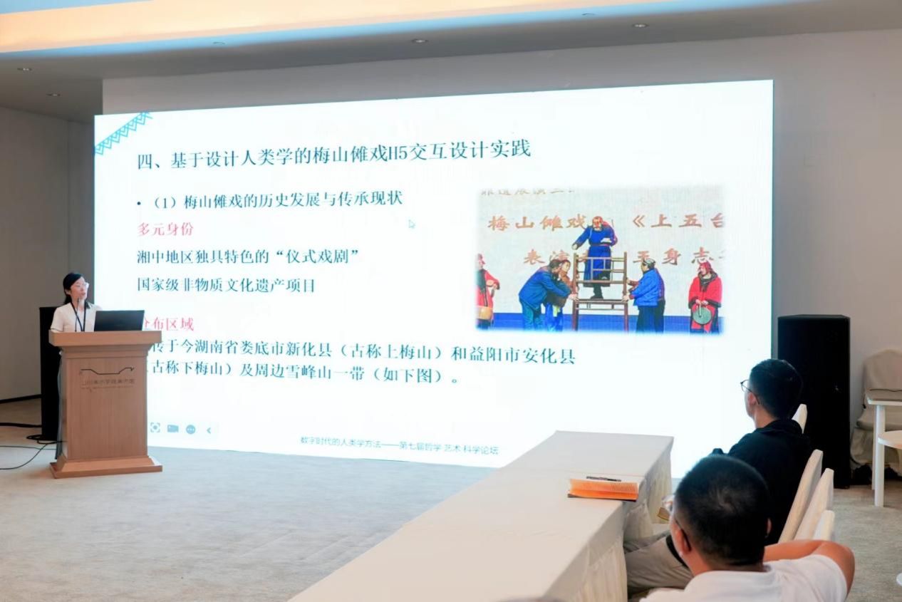 论坛上,龚坚博士发表了题为“设计人类学视域下的非遗数字化创新研究——以梅山傩戏H5交互设计实践为例”的报告。该报告不仅展示了数字技术如何被用于保护和创新性地展示传统文化,还深入探讨了数字化手段如何为非物质文化遗产的传承注入新的活力。龚坚博士通过梅山傩戏的H5交互设计实践案例,生动诠释了数字化技术在非遗保护与创新中的实际应用和巨大潜力,这一内容成为了论坛的一大亮点。