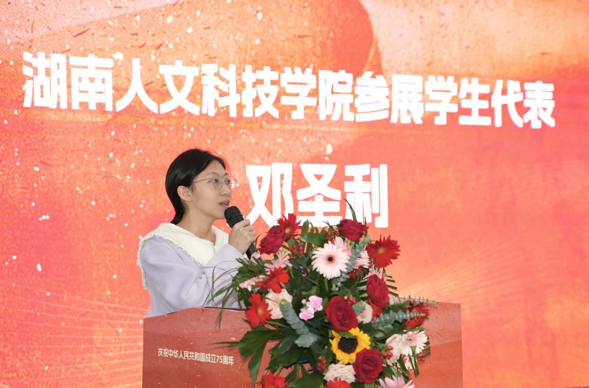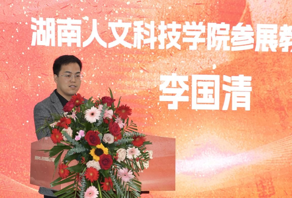教师代表李国清与学生代表邓圣利相继发言,深情表达了学院师生在艺术创作中融入的对祖国、对民族的深情厚谊及对美好未来的无限向往。