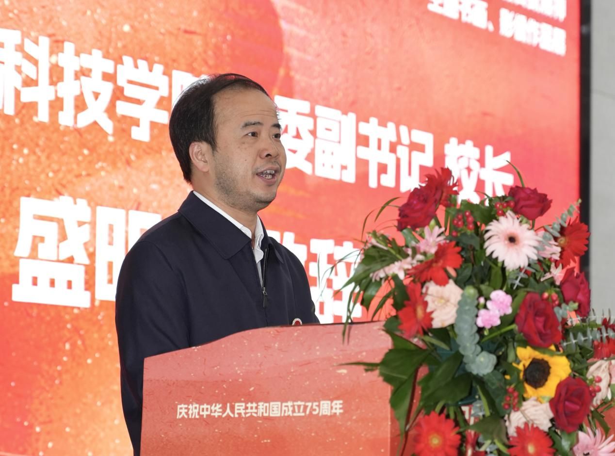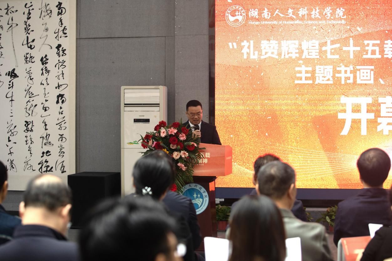 党委副书记、校长盛明科发表开幕致辞,对展览的成功举办表示热烈祝贺。他强调,此次展览不仅是深入学习贯彻习近平新时代中国特色社会主义思想,特别是其文化思想的生动实践,更是激发爱国主义精神、传承教育家风范、展现学院专业风采、凸显应用型办学理念的重要举措。盛校长鼓励全校文艺工作者及学生坚守艺术初心,勇于创新,深入生活,精心创作,为新时代文化建设添砖加瓦,贡献才智。
