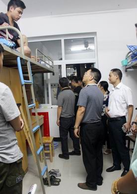 每到一间寝室,系领导都会亲切的询问每位新生的基本情况,了解他们到校后的感受,对新环境是否适应,食堂的饭菜是否合口以及对寝室的评价与建议。党总支书记李小林提醒同学们要高度注意财产安全和出行安全等问题,并告诉同学们如果遇到了什么困难可以随时向系领导和辅导员寻求帮助。
