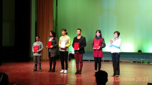 2015年5月4日,学校团委在逸夫楼音乐厅举办了一年一度的五四表彰大会,我系梁琼、童玲两位老师获“魅力青年教师”荣誉称号,11级学生黄根福获“最美团员”荣誉称号。