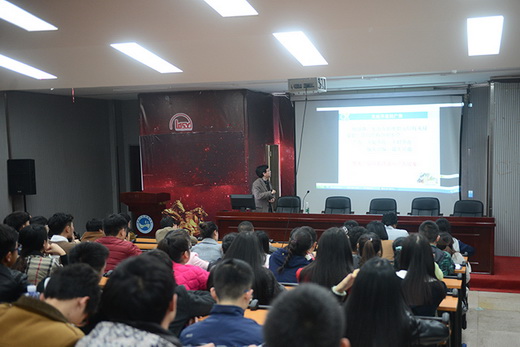 首先发言的是李正良教授,他讲述的主题是《烦人的广告并不凡》,用精心准备的PPT向所有的老师和同学全面的介绍了大广赛,并展示了大广赛中大量优秀又富有创意的设计作品,让在座的所有老师和同学都深深感受到了大广赛和广告设计的魅力。同时他提出广告设计要敢于创新、要出其不意,并鼓励同学们积极参与到即将开展的全国第七届大学生广告艺术大赛中去,希望同学们自身得到锻炼、得到提高。