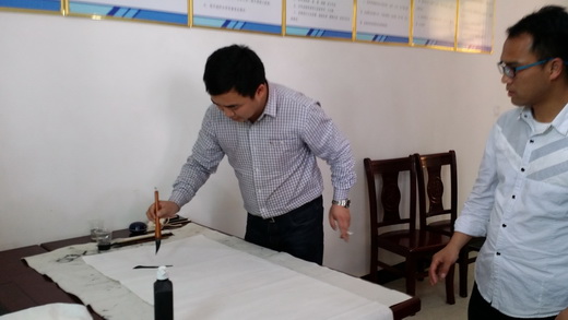 这次“文化进社区”活动让学生党员亲身体验到了书画艺术对普通民众同样有着巨大的吸引力,通过“文化进社区”活动,增强了大学生的社会责任感和艺术的自信心。(张林子、彭建成,2015年4月17日)