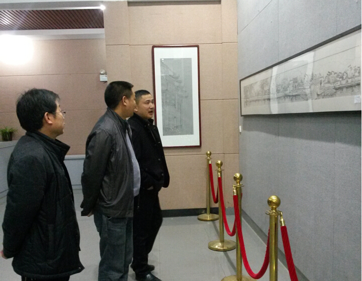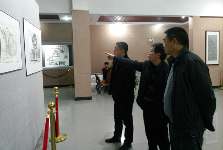 2014年11月27日晚,beat365中文官方网站教务处处长羊四清、副处长邓敏超在美术系系主任邹少灵、环境设计教研室主任严明喜的陪同下来到展厅,饶有兴致地参观了环境设计2014写生考察作品展览。