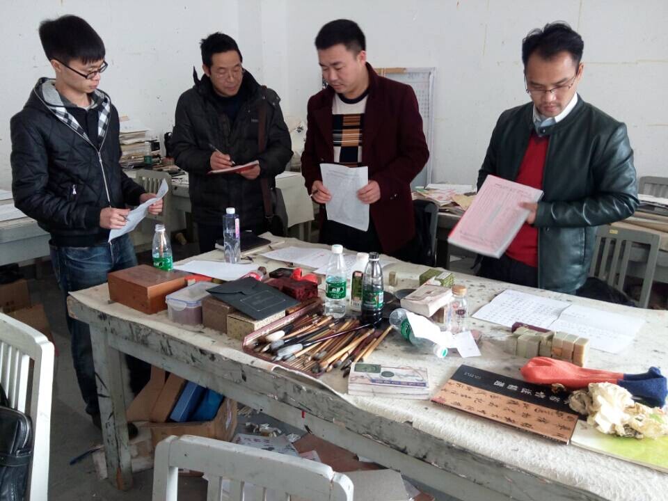 12月24日上午,书法教研室的老师们对美术系书法学专业2013级书法教育班的钢笔书法作品进行了结业考评。参加本次考评的有易俊老师、彭建成老师、曾庆勋老师和蒋传存老师。