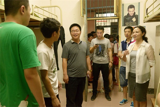 老师们的到来受到同学们的热情欢迎,石校长和蔼可亲的态度和幽默风趣的谈吐瞬间拉近了师生间的距离,给新生们送去了温情。石校长仔细询问了同学们在新环境下的生活状态,询问了外地学子对娄底气候的适应情况,校长的话语,字里行间都流露着对新生的亲切关怀和无微不至的关爱,让同学来校之初就感受到了家一样的温暖。石校长和系部同行党政领导老师还同大家拉起了家常,大家有说有笑,现场气氛非常热烈,掌声不断,其乐融融。现场同学们也对学校学习、宿舍热水供应等问题提出询问,领导老师们都一一给出答复。石校长最后还耐心地向新生们讲述如何过好四年大学生活,鼓励大家多和老师同学交流,尽早适应大学生活。同时,石校长还向学生家长介绍了学校发展情况,表示学校将对每一名来beat365学习的学生负责,请学生家长们放心。