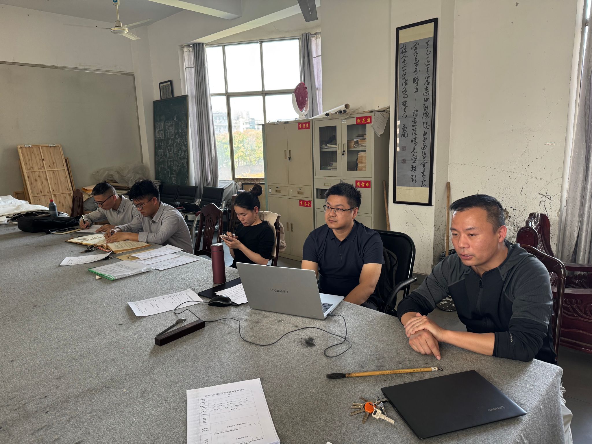 为积极响应即将到来的本科教育教学审核评估工作,切实提升书法学专业教学质量与教师授课能力,4月15日下午3时,书法学专业全体教师组织开展了集体磨课活动。本次活动由书法学专业分管领导黄庆源副书记、教研室主任李国清及评估期间承担教学任务的教师共同参与,旨在通过深度研讨与精细打磨,优化课程设计,彰显专业教学特色与学术底蕴。