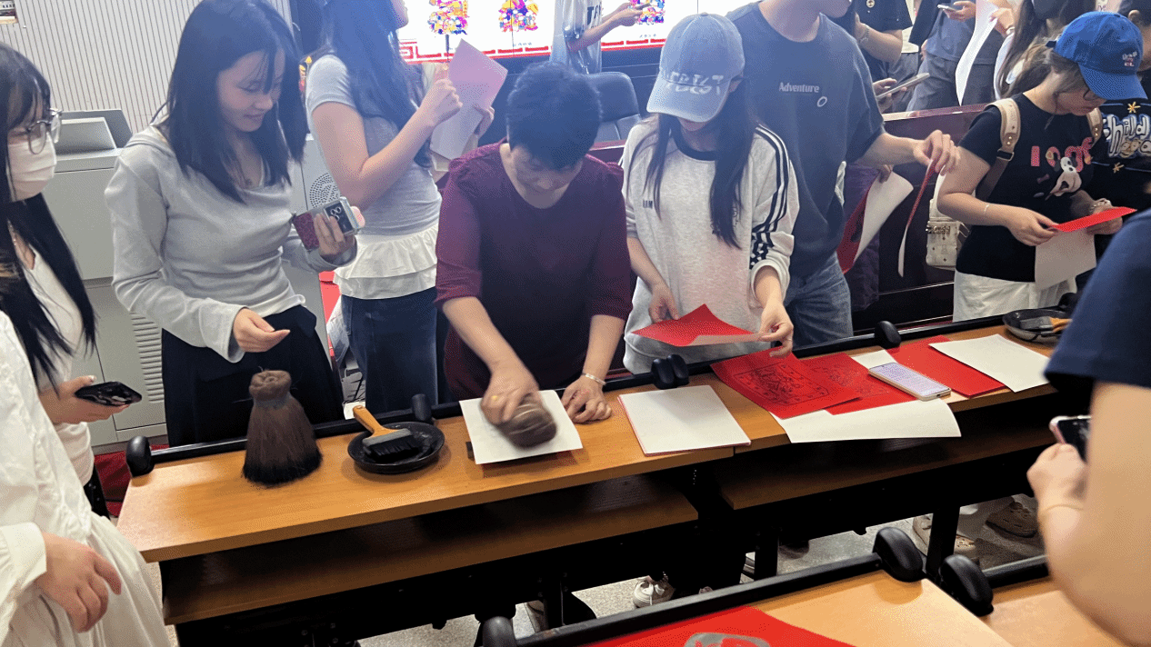 讲座尾声,尹冬香呼吁视传学子参与非遗活化,以设计之力让年画“走出博物馆,融入生活”,并邀请同学们体验了单色木版画的印制。本次讲座不仅是一次技艺的科普,更是一场文化使命的传递,为同学们输入了传统工艺当代转化的思想力量。
