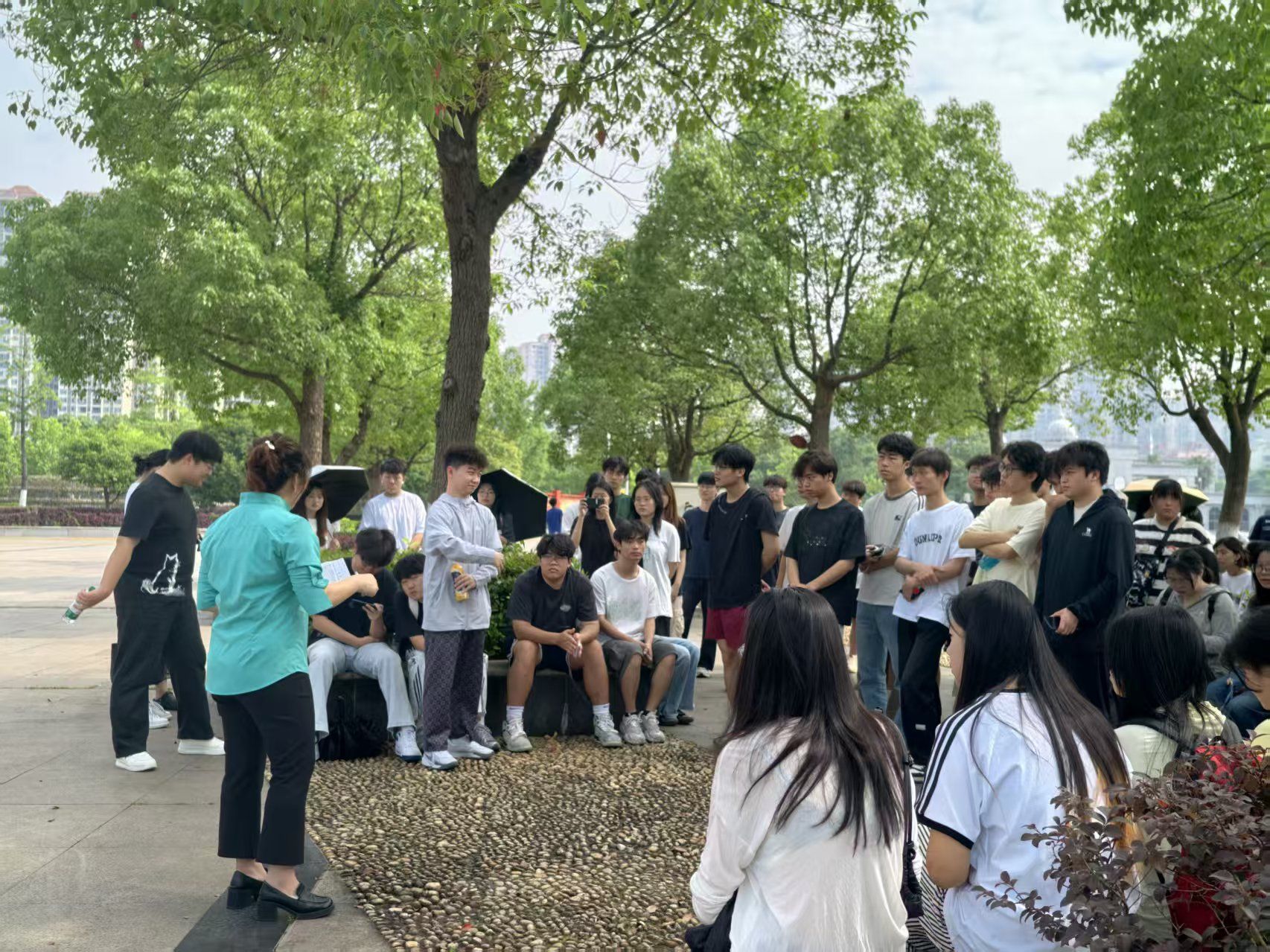 谭娟主任对课程要求做总体介绍,对课程教学任务做相关安排,对公园的休闲廊道、林荫步道、休憩广场等核心区域进行了系统性介绍。
