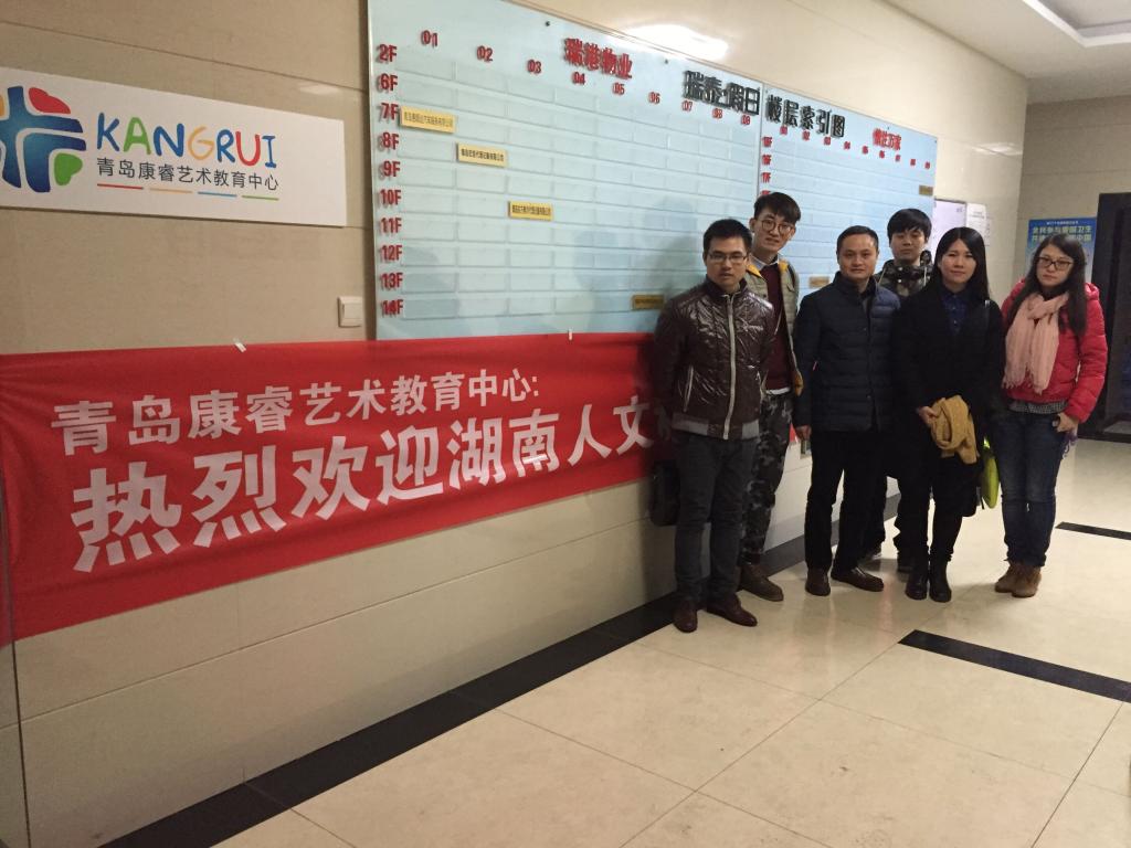 1月4日,美术系党总支王东光副书记和系就业专干陈天佑老师赴青岛考察2015届毕业生孙涛的创业项目——青岛康睿艺术咨询有限公司。公司成立于2015年8月21日,注册资金60万,公司办公场地400平米,正式员工16名,公司由青岛康睿艺术教育中心、青岛康睿琴行、青岛康睿艺术团组成,是一家集综合艺术教育(音乐+舞蹈+美术+书法+播音主持+影视表演+戏剧),功课辅导,艺术咨询,教育教学咨询等一体化的艺术文化教育机构。是一家应届大学生创业公司。包括4个专业琴房、2个舞蹈工作室、3个画室、2个儿童艺术工作室、2个书法工作室、1个专业录音棚。