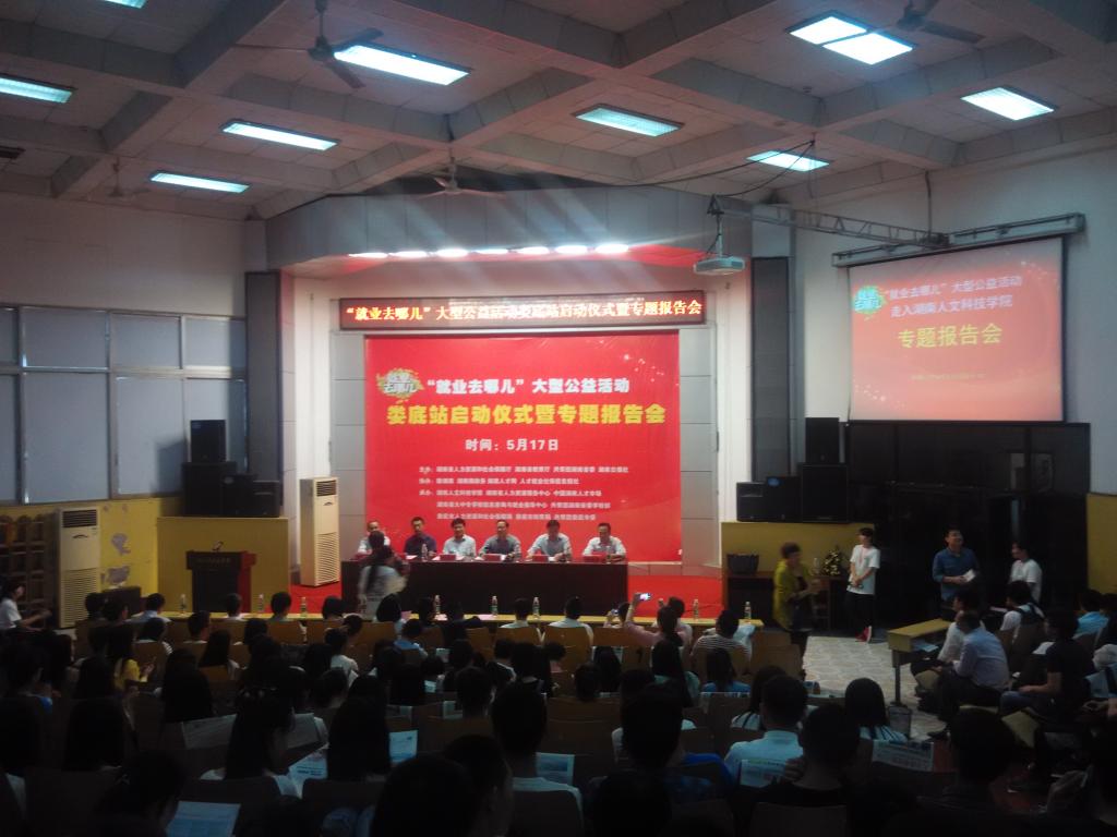 5月17日下午2:30,由湖南省人力资源和社会保障厅、湖南省教育厅等主办,beat365中文官方网站、湖南省人力资源服务中心等承办的“就业去哪儿”大型公益活动娄底站启动仪式暨专题报告会在匠成楼报告厅举行,我院王东光副书记、蒋全顺老师及16位学生代表出席了本次启动仪式。