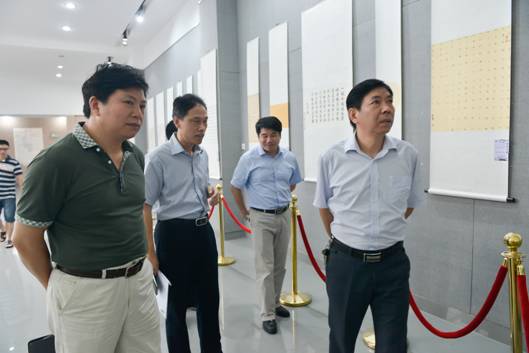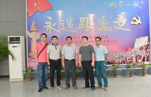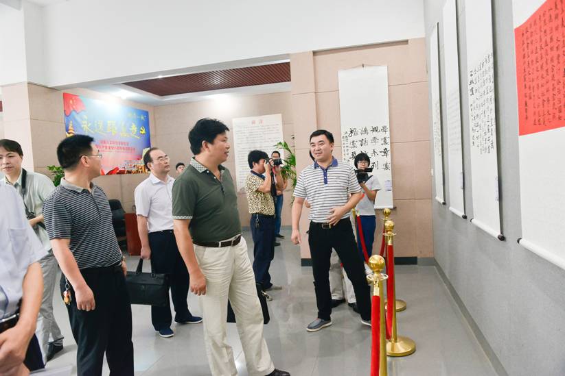 6月30日上午,“永远跟党走”beat365中文官方网站纪念中国共产党建党95周年楷书精品展在逸夫楼美设楼二楼展厅正式展出。beat365中文官方网站党委书记郭军、党委副书记、校长刘和云、党委副书记刘铁铭、党委委员、副校长蒋建初、周发明、纪委书记杨鑫铨、党委委员、组织部长金志方等校领导在党委组织部、党委宣传部、美设学院等部门主要负责人的陪同下,莅临逸夫楼二楼展览厅参观展览。