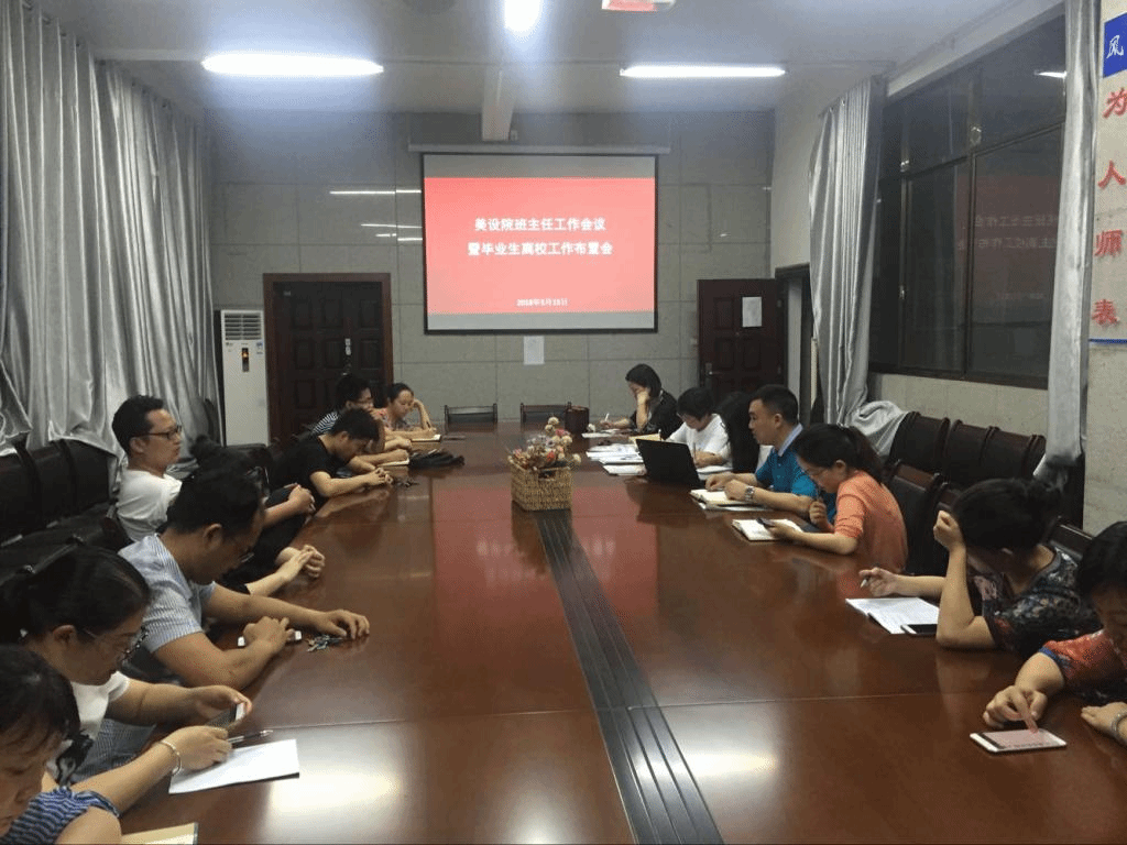会议传达了近期省教育厅关于高校学生安全工作会议的指示与精神,要求班主任老师们开展工作时要“三及时”“两注意”,多深入班级与学生。同时,易书记还就毕业生离校工作进行了安排与部署,明确了值班职责,并强调了征兵和就业工作。